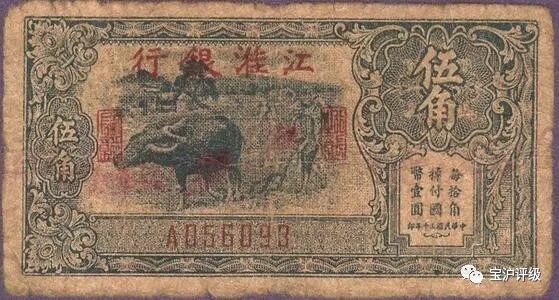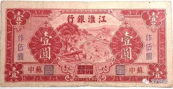 江淮银行1942年发行江淮银行纸币, 该纸币成为苏中解放区的本位币。另外江淮银行还发行过有加印“苏中”“盐阜”“苏浙”地名的纸币以便分区使用。